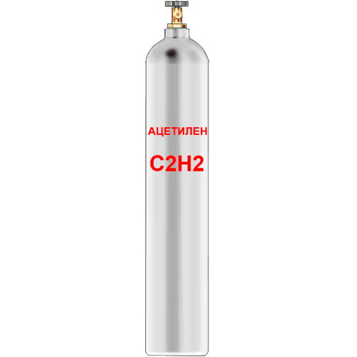 Ацетилен марки «А» — объёмная доля ацетилена не менее 99,95% осушенный. Поставляется в стальных баллонах: 1. 40 литров (5 кг.)