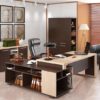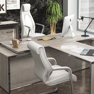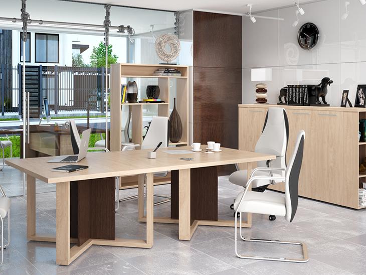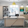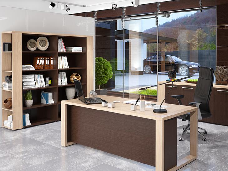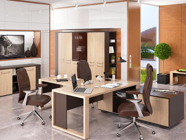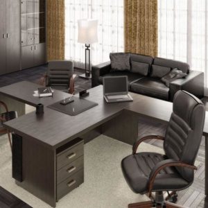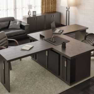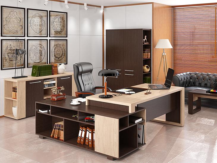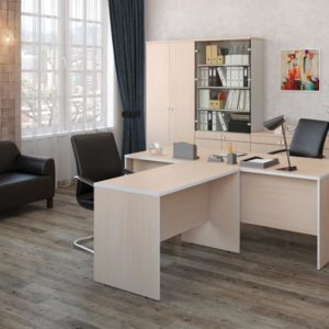 Стол руководителя, тумба, брифинг-приставка, шкаф для документов, гардероб.