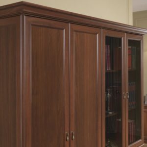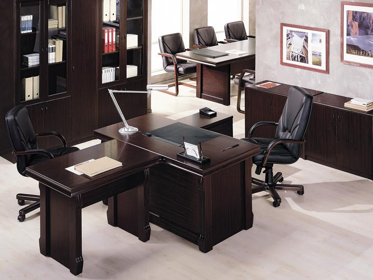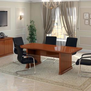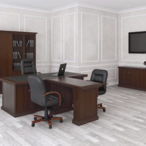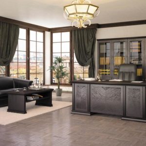 Стол руководителя, тумба сервисная, брифинг-приставка, шкаф для документов, гардероб.