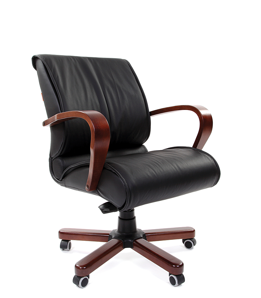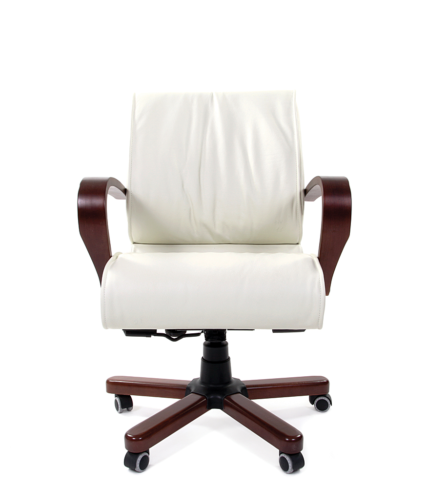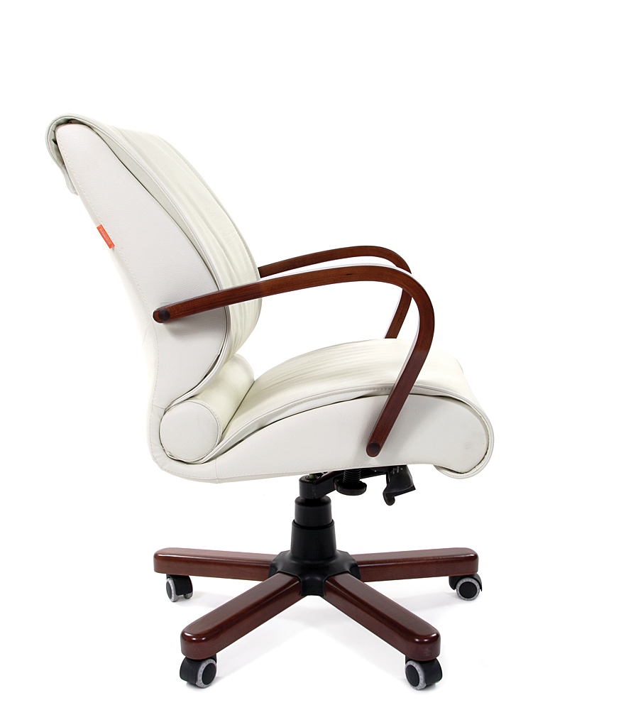 Весьма оригинальное руководительское кресло. Очень легкая и воздушная форма, устремленная вперед и вверх, но в то же время — солидность и респектабельность классических деревянных элементов.