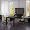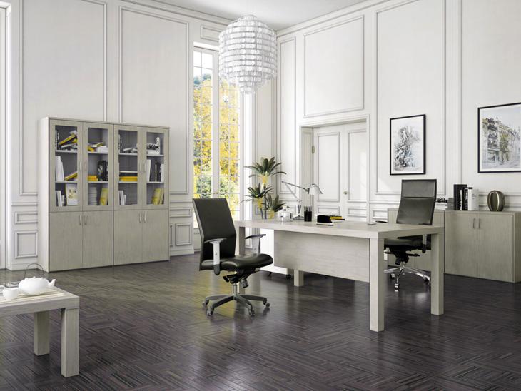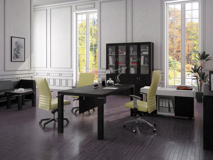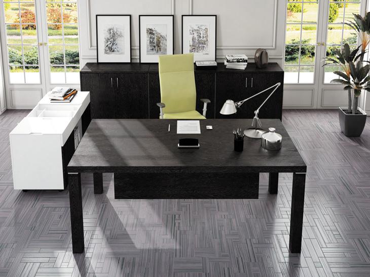 Стол руководителя, тумба сервисная, шкаф для документов с боковыми накладками и топом в цвет, гардероб с боковыми накладками и топом в цвет.