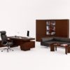 Столешницы письменных столов имеют вставку из Эко.кожи. Толщина кожи — 2 мм.