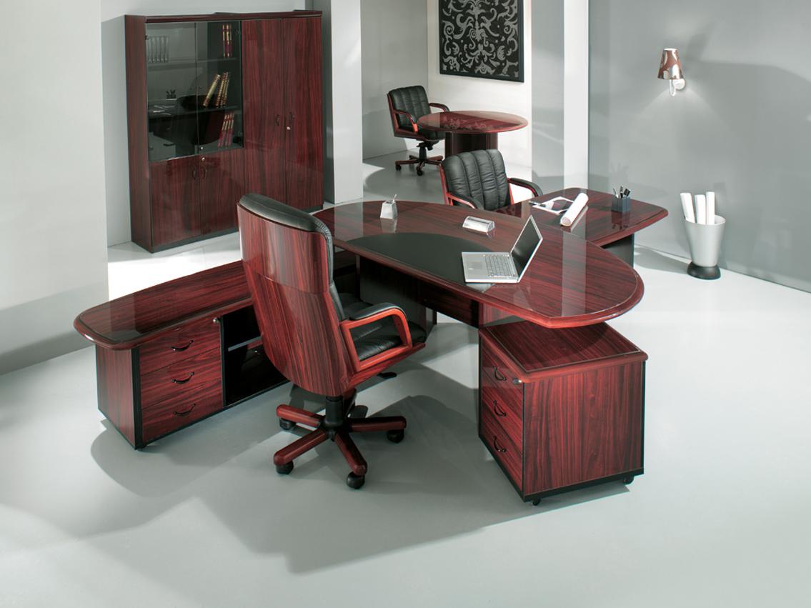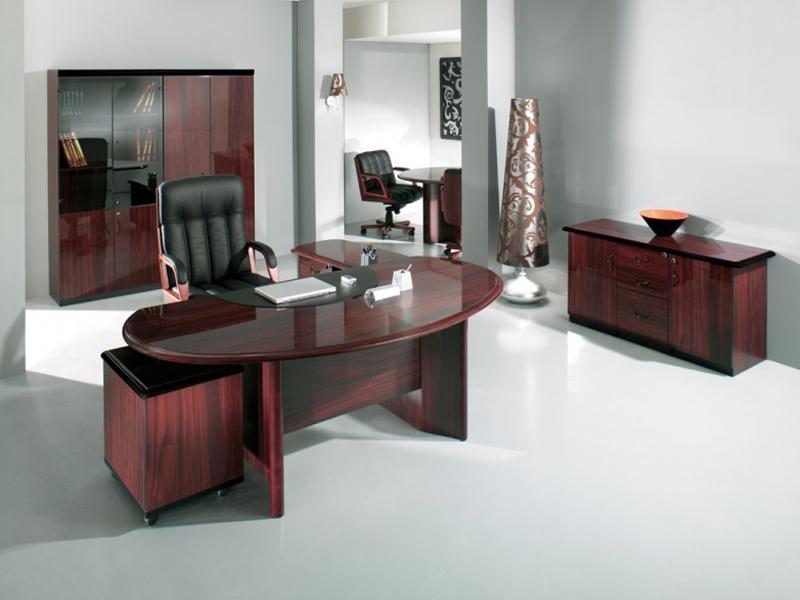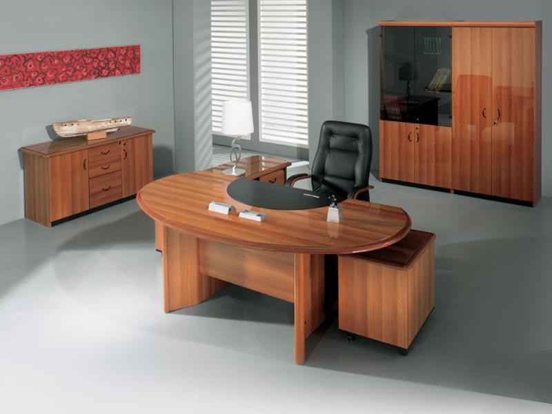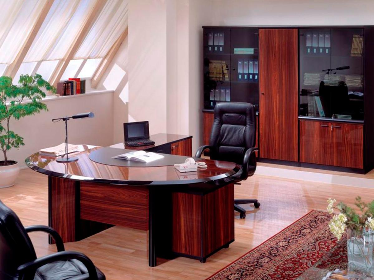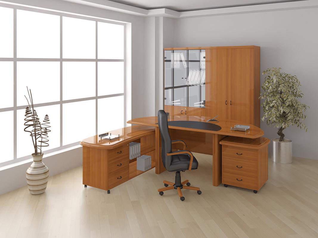 Стол руководителя, тумба сервисная, брифинг-приставка, шкаф для документов, гардероб.
